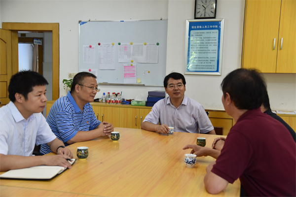李国忠书记(左三)详细了解学校2017年招生就业情况