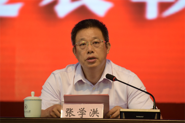 校党委书记张学洪在讲话中代表学校党委向受到表彰的先进单位和个人表示衷心的祝贺,向全校共产党员致以节日的问候,向关心、支持和参与学校发展建设的各民主党派、无党派代表人士表示衷心感谢。他指出,举行庆祝建党96周年暨先进表彰大会,主要目的是动员全校各级党组织和广大党员干部,进一步解放思想、开拓创新,进一步发挥政治核心作用、战斗堡垒作用和先锋模范作用,以更加饱满的热情和顽强拼搏的精神,积极投身到全校的各项事业建设中去,创造性地做好各项工作,全面推动学校各项事业的健康快速发展。