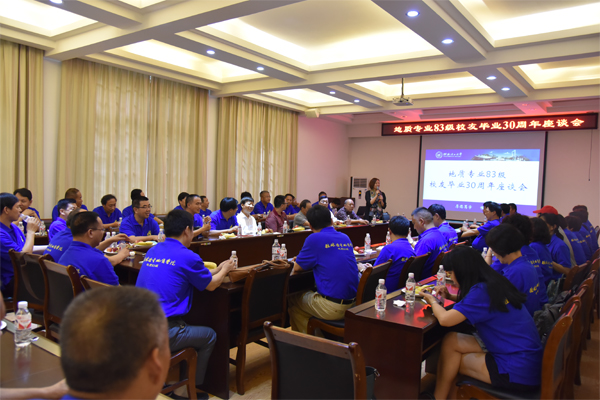 高菊生、叶英、黄小川、丑述卫作为83级地质、物探、化探、水工四个专业的校友代表在大会上发言,激情追忆30年前在母校求学的点点滴滴,分享各自毕业后的工作经历和人生感悟,表达了对老师和母校的感恩之情。