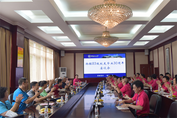 当天下午,学校在屏风二会议室举行客座教授聘任仪式,聘任83级校友胡建明、叶英、黄小川为beat365客座教授,解庆林校长为三位校友颁发了聘书。稍后,83级校友分专业进行座谈,校领导张学洪、解庆林、陈学军、曾繁荣分别参加了化探、地质、水工、物探专业的座谈会。座谈会上,师生欢聚一堂,畅叙别后岁月,分享当年求学趣事,共商母校发展大计。