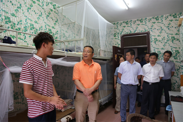 王敦球副校长首先率队对分校1号宿舍组团(俊逸园)进行了安全隐患排查。检查过程中,王敦球副校长深入学生宿舍,了解卫生安全状况和平时用电用火情况,与学生亲切交谈,细心叮嘱学生们要做好安全隐患排查和安全防范。同时,他还与陪同检查的分校领导进行实时交流,就进一步加强分校安全稳定工作给出了指导意见。