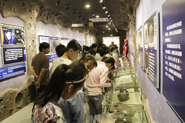 君武小学学生在陨石展厅参观学习