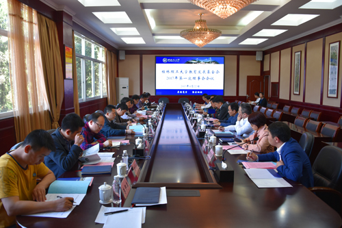 4月22日下午,学校教育发展基金会2017年第一次理事会会议在屏风校区教八楼三楼会议室召开。学校校长解庆林、副校长陈学军及理事会理事等出席会议。会议由学校校友办主任、校办副主任程安福主持。