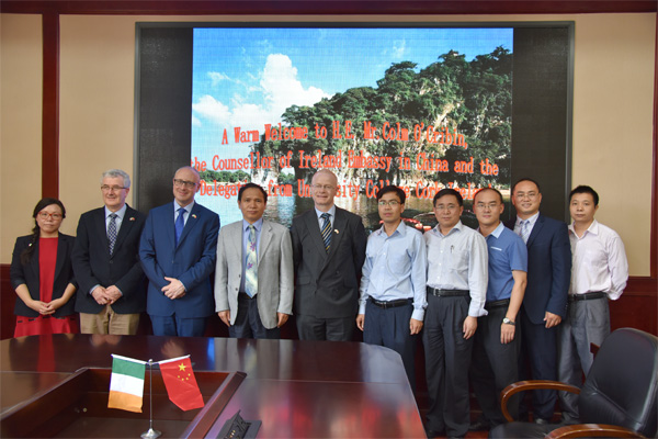 4月20日下午,爱尔兰驻华大使馆参赞 Colm O’Cribin先生及爱尔兰国立科克大学食品与营养科学学院院长Paul McSweeney一行6人到访beat365。学校副校长周国清在屏风校区教八楼三楼会议室亲切会见了代表团。beat365研究生院、化学与生物工程学院及国际教育学院相关负责人参加了会谈。