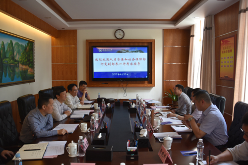 4月20日下午,全国政协委员、人社部原副部长、中国人才研究会会长何宪一行三人来beat365调研绩效工资改革工作。自治区人社厅、桂林市人社局等有关单位负责人陪同调研。学校校长解庆林、总会计师曾繁荣在屏风校区第二会议室热情接待了何宪同志一行。学校人事处、财务处、材料科学与工程学院、外国语学院负责人参加了座谈。