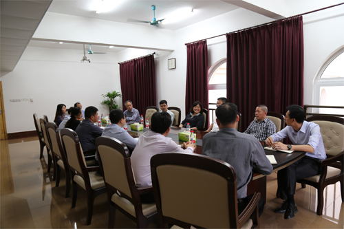 4月14日,王玫副校长带领现代教育技术中心负责人及相关人员到南宁分校空港校区调研指导工作。分校在家领导、校长助理和分校校长(党委)办公室负责人等在行政楼417会议室参加了座谈会。