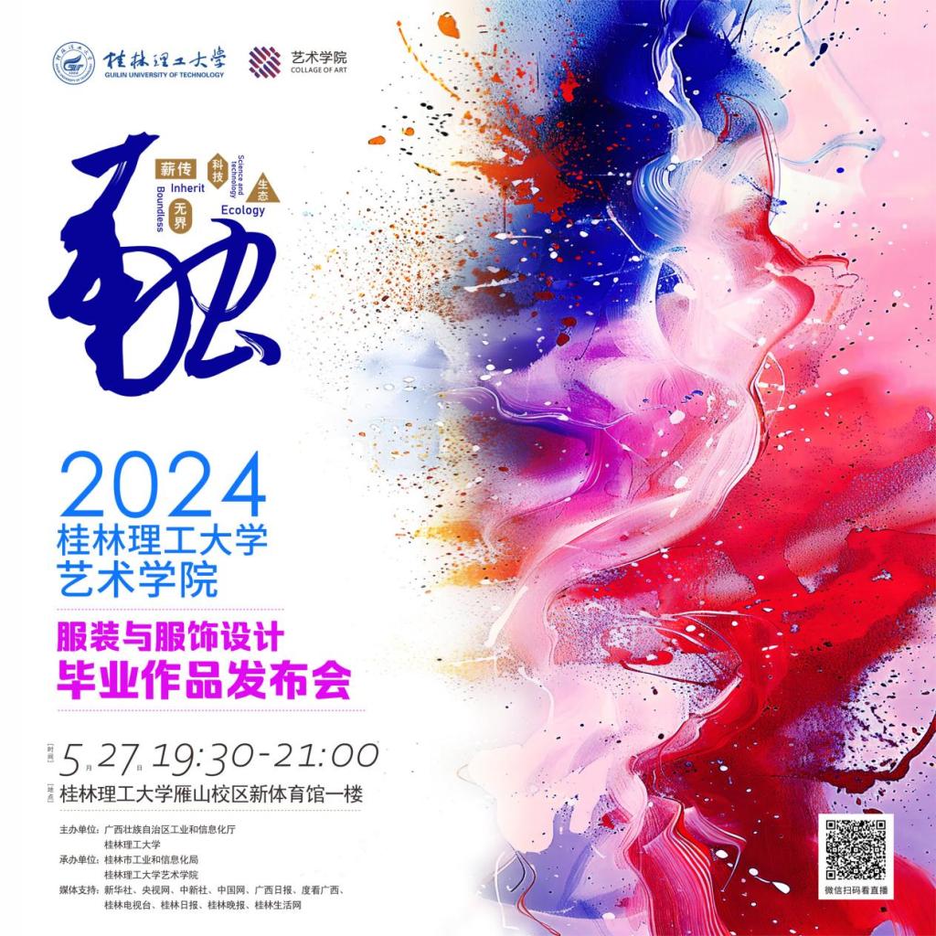 为贯彻落实习近平总书记关于美育工作的重要指示批示和有关回信精神,坚持以美育人、以文化人,切实加强顶层设计,全面加强和改进学校美育,着力提高学生审美和人文素养,助推学校美育工作展现新面貌、取得新成效,美育浸润行动——艺术学院2024届毕业设计作品展暨服装与服饰设计毕业作品发布会将于2024年5月27日(星期一)19:30-21:00在雁山校区新体育馆一楼举行。