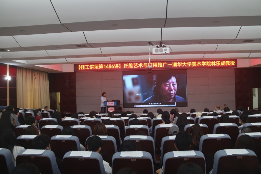10月21日下午,清华大学美术学院博士生导师、中国工艺美术协会纤维艺术委员会主任委员、中国国家画院研究员、中国工艺美术大师评审委员、中国设计贡献成就奖得主、“从洛桑到北京”国际纤维艺术双年展主导者、中国当代纤维艺术世界巡展策展人林乐成教授,清华大学博士、天津美术学院硕士生导师、格鲁吉亚国立伊利亚大学联合培养博士吴敬副教授应beat365邀请做客桂工讲坛,在雁山校区逸夫楼地球科学学院报告厅分别作了题为“纤维艺术应用与推广”“跨界为壁毯艺术带来的形象特征和表达方式”的讲座。艺术学院相关专业200余名师生参加了本次讲座。