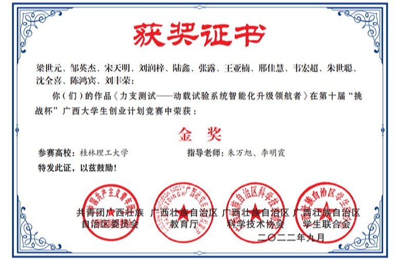 作品《力支测试——动载试验系统智能化升级领航者》荣获金奖