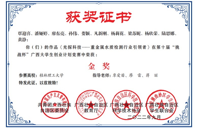 作品《光探科技——重金属水质检测行业引领者》荣获金奖