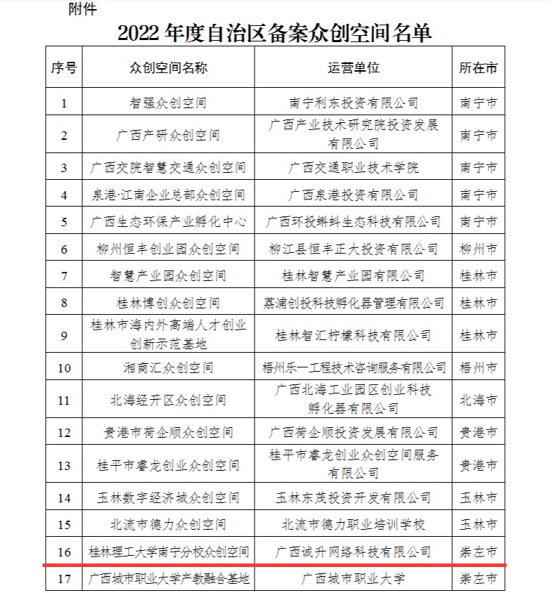 近日,广西科技厅发布《自治区科技厅关于公布2022年度自治区备案众创空间名单的通知》(桂科成字〔2022〕91号)文件,beat365南宁分校众创空间成功入选,这是南宁分校的首家区级众创空间,也是分校近年来创新创业教育改革取得的又一丰硕成果。