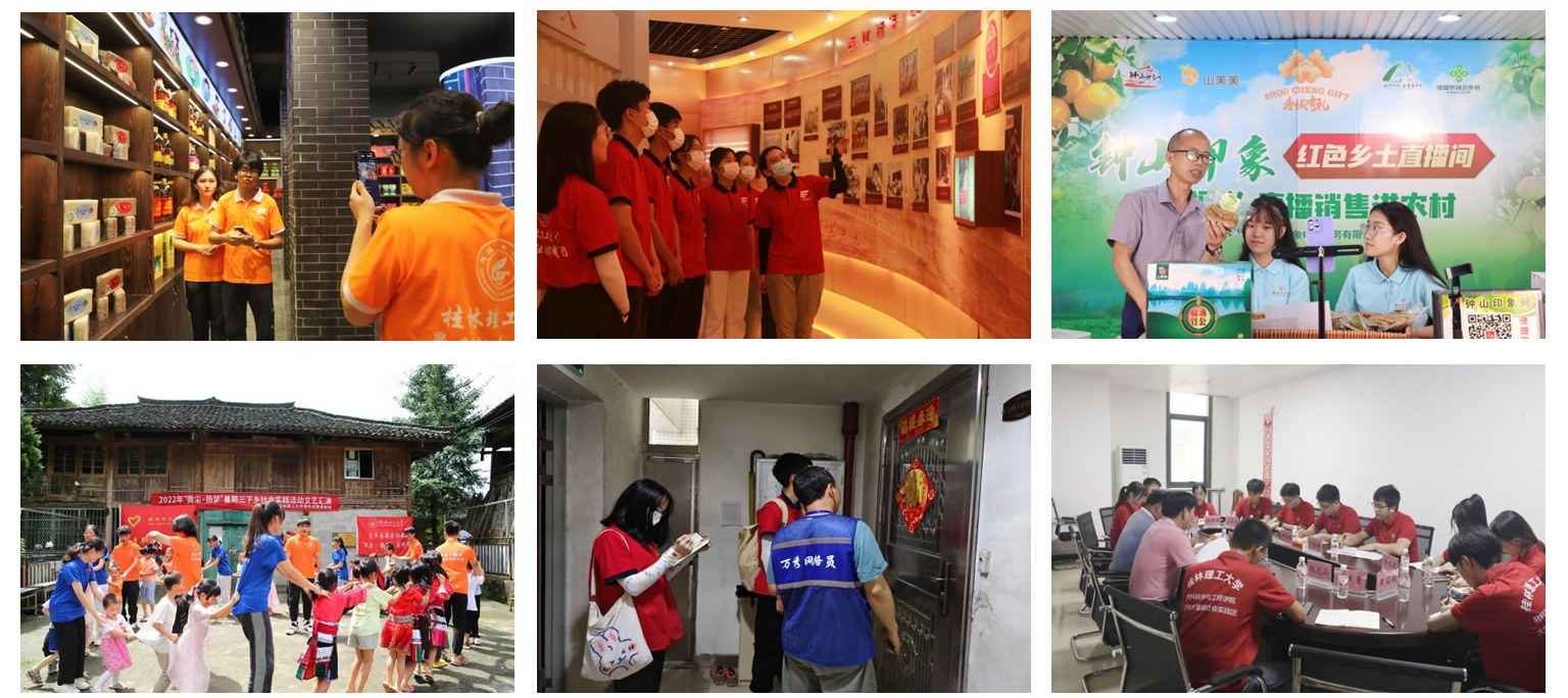 一直以来,学校高度重视大学生社会实践工作,2022年暑假,校团委统筹组建校、院两级暑期社会实践团队90余支,分散性实践8000余人赴区内外围绕党史学习教育、理论宣讲、乡村振兴等专题开展社会实践活动,服务地覆盖区内外多个省份,其中3个团队获评全国重点团队,4个团队获评自治区重点团队,2支团队获评全国专项实践活动团队。实践活动得到人民网、中青网、广西学联微信公众号等多家媒体报道,收到共青团栖霞市委、平乐县乡村振兴局等多个单位发来的表扬信,得到社会广泛认可。
