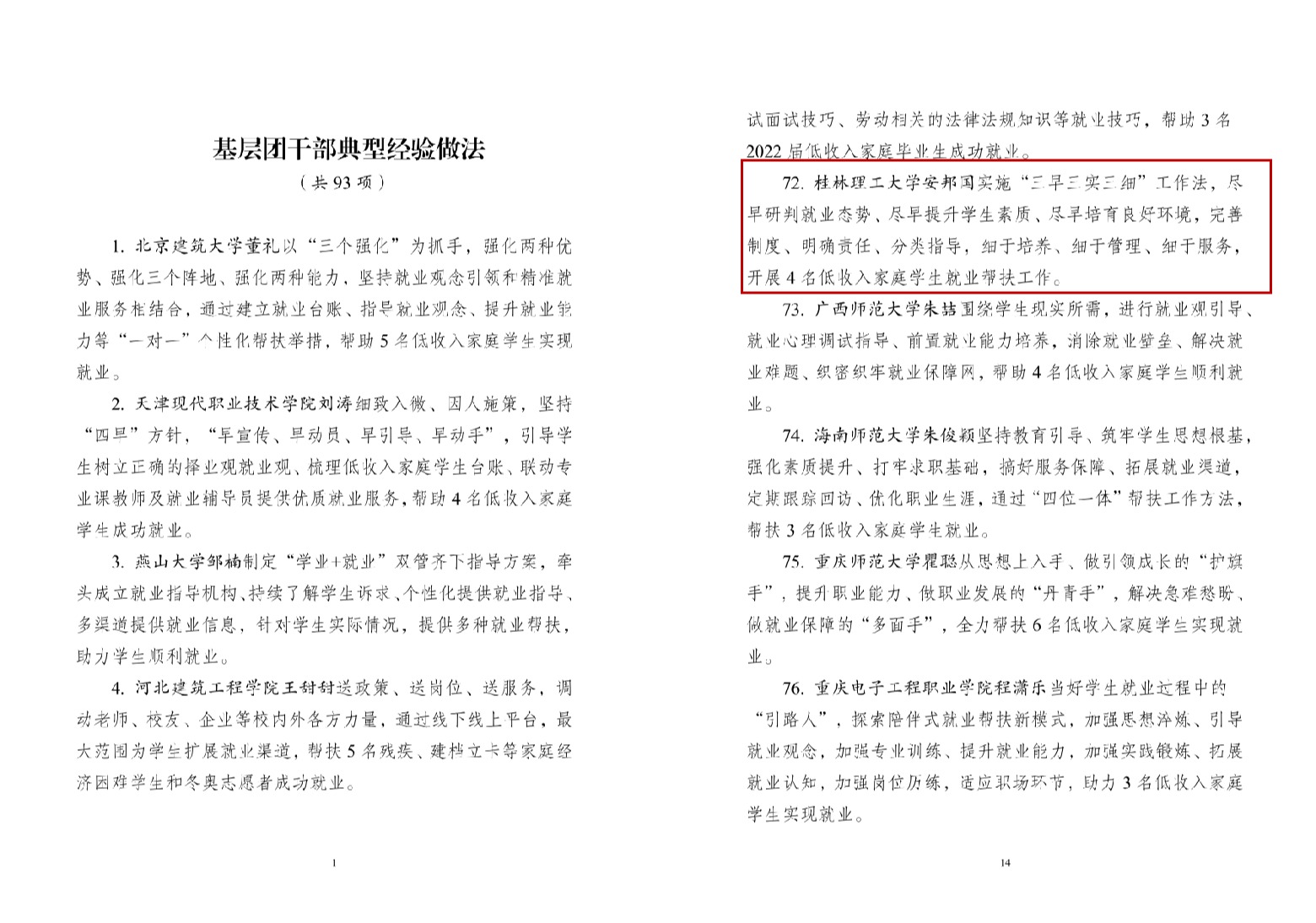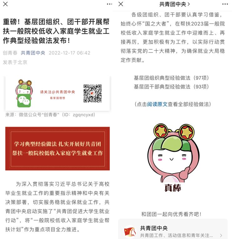 为深入贯彻落实习近平总书记关于高校毕业生就业工作的重要指示精神和中央有关决策部署,切实服务稳就业保就业工作,共青团中央启动实施了“共青团促进大学生就业行动”,将“一般院校低收入家庭学生就业帮扶计划”作为重点项目全力推进。近日,共青团中央发布《基层团干部典型经验做法(93项)》,选取93项团干部在具体工作中总结提炼的好经验好做法进行发表,beat365共青团干部安邦国老师的典型经验做法被收录发表。