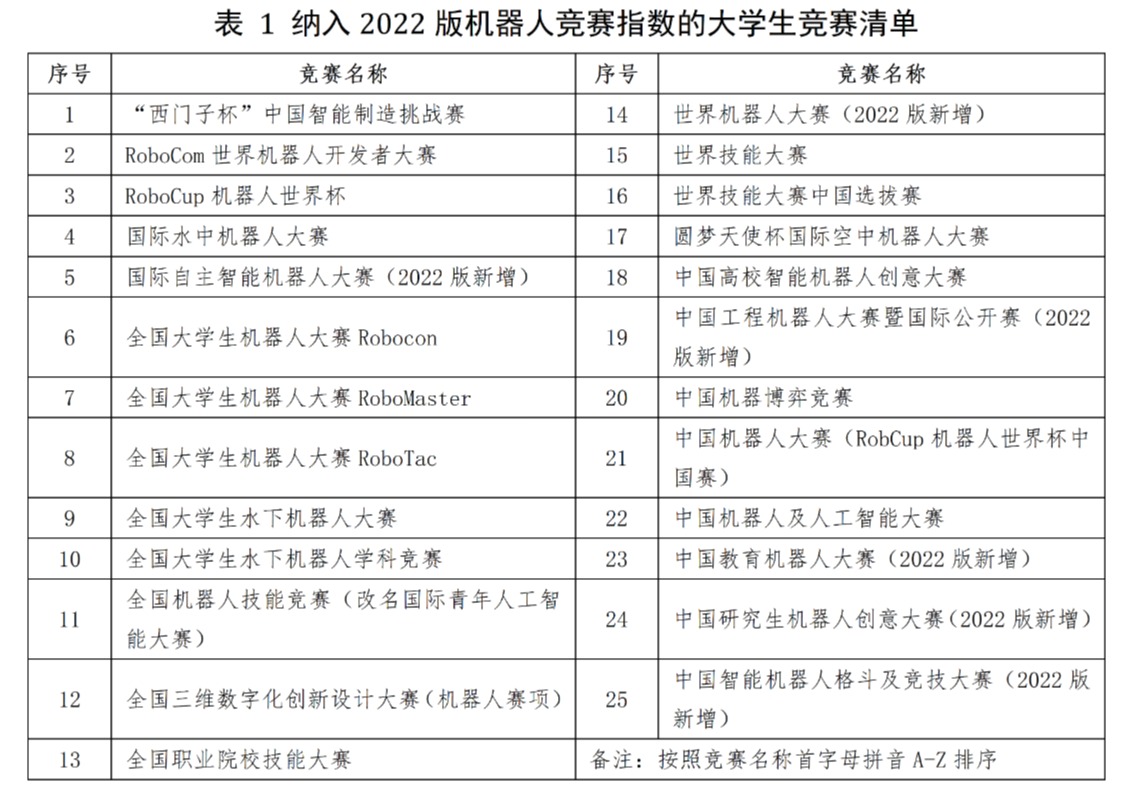纳入2022版机器人竞赛指数的大学生竞赛清单