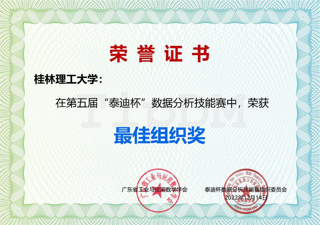 近日,2022年第五届“泰迪杯”数据分析技能赛获奖名单公布,beat365理学院、南宁分校等单位参赛学子在比赛中喜获佳绩,获本科及以上组一等奖1项、二等奖7项、三等奖3项,学校获“最佳组织奖”。