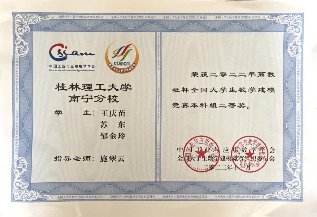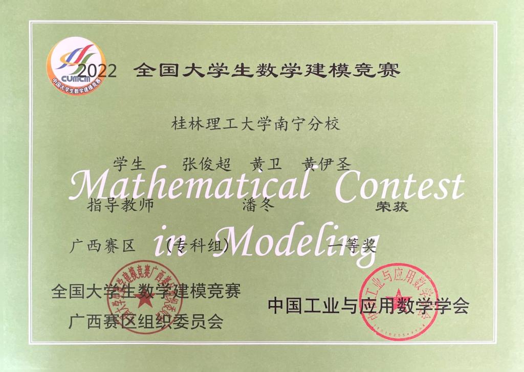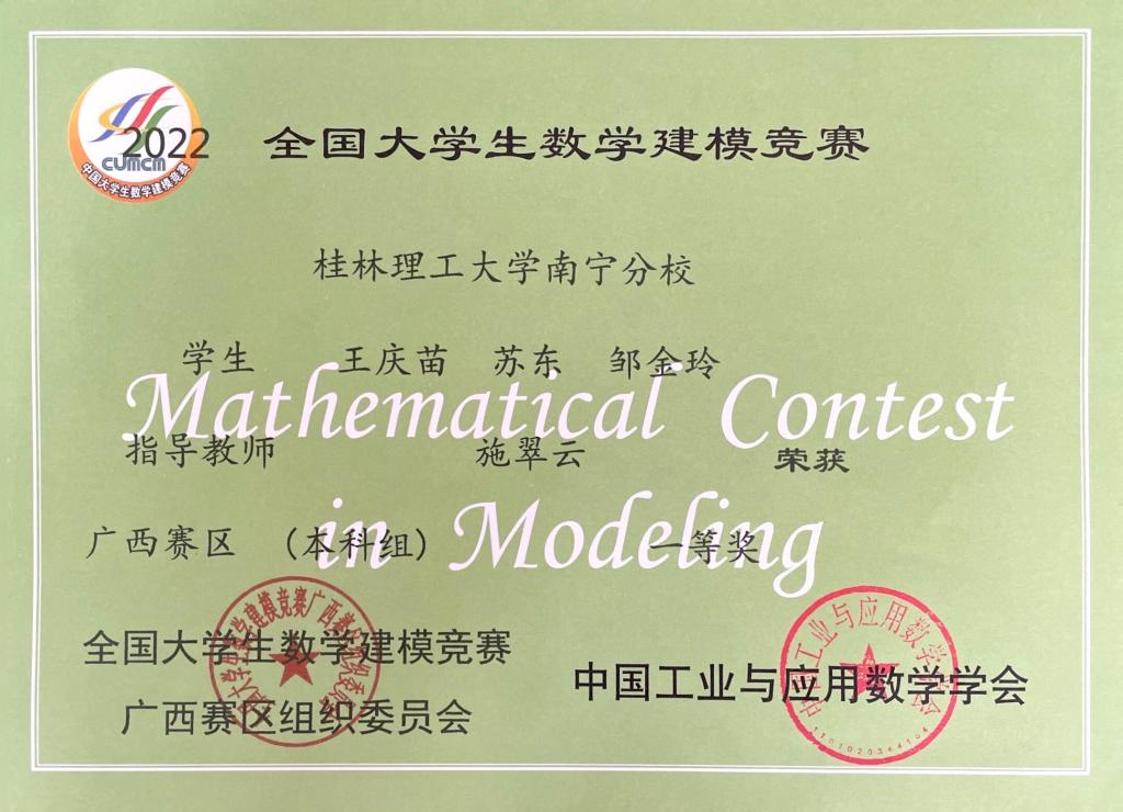 南宁分校在2022年全国大学生数学建模竞赛中喜获佳绩