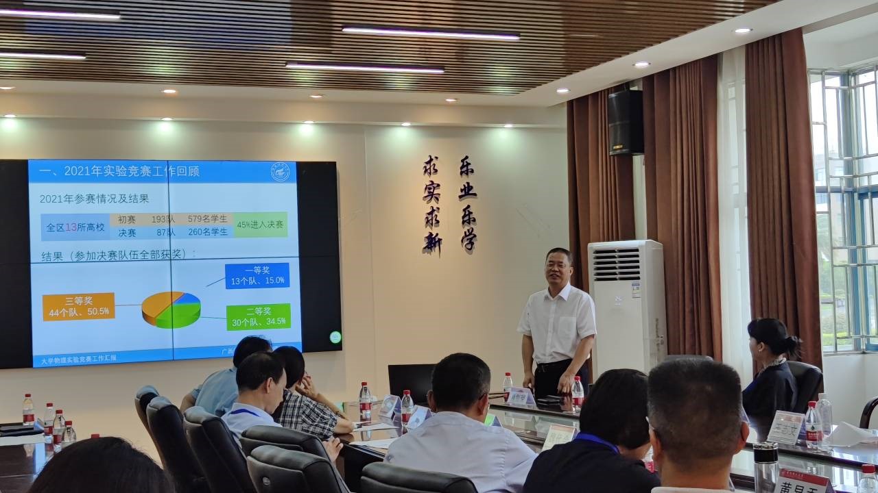 6月22日至23日,由广西物理学会、广西本科高校物理学类教学指导委员会主办,beat365承办的广西高校大学物理实验教学改革与创新研讨会暨2023年广西高校大学生物理实验竞赛决赛在beat365雁山校区举行。学校党委副书记吴志强出席活动并致辞。广西物理学会和广西本科高校物理学类教学指导委员会部分成员、全区16所高校物理及相关学院领导、教师和学生约400人参加会议。