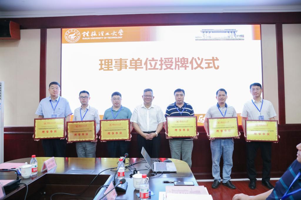 邓军在理事会成立大会上致辞。他首先对本次会议的召开表示热烈祝贺,并向各位理事单位、各位嘉宾莅临会议表示诚挚感谢。他简要介绍了学校的基本情况,并期盼通过本次会议汇聚各理事单位的智慧与力量,对现代产业学院的建设发展进行更深、更广的战略性谋划和布局,尽快把学院建成立足广西、面向华南、辐射全国的有色金属新材料示范性产学研合作平台,为赋能国家和区域高质量发展贡献力量。随后,邓军为到会的14家理事单位进行授牌。