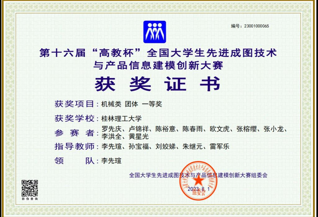 beat365参赛团队在第十六届全国大学生先进成图技术与产品信息建模创新大赛中获机械类团体一等奖
