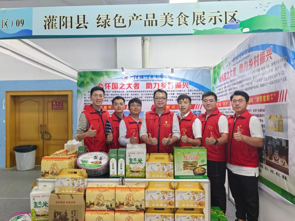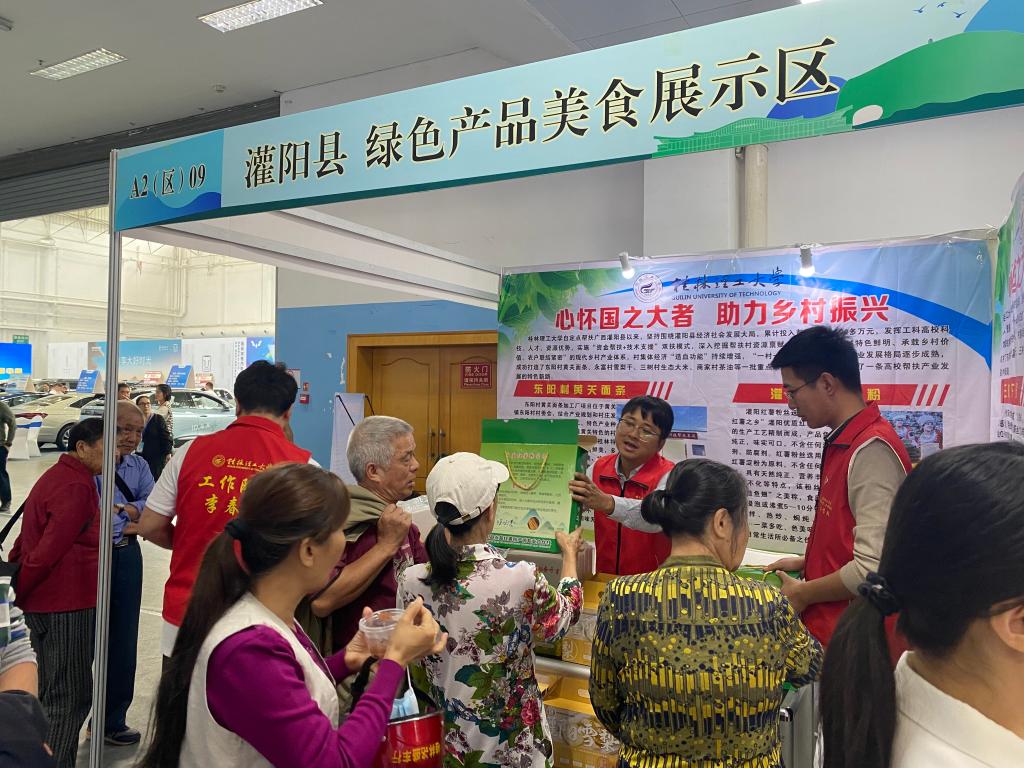 11月3日上午,2023广西·桂林第七届绿色低碳产业博览会在桂林市甲天下广场举行。受主办方邀请,学校帮扶灌阳县乡村振兴重点产业帮扶项目东阳黄关面条,永富雪梨干、红薯粉,三树村生态米,商家村茶籽油等农特产品代表灌阳县到会参展。