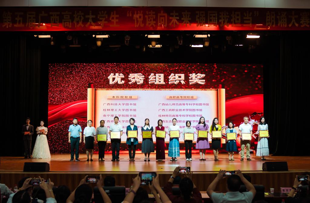 第五届广西高校大学生“悦读向未来 强国我担当”朗诵大赛由广西高教学会图书馆专业委员会、广西高校图书情报工作指导委员会主办,全区58所高校,共计12387件作品参赛,经过层层选拔,共48件作品进入决赛。beat365学子凭借稳定的发挥,声情并茂的朗诵,端庄得体的仪态,喜获多个奖项。