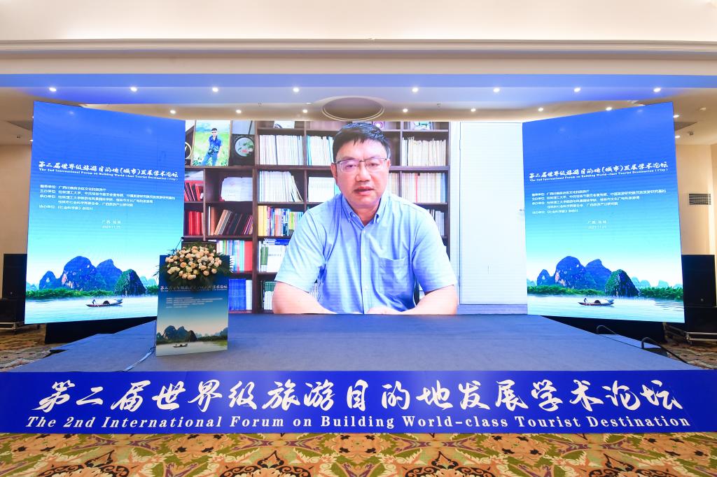 罗盛锋教授在致辞中表示,保护好桂林山水、打造桂林世界级旅游城市,是建设新时代中国特色社会主义壮美广西的应有之义,期待各位专家、学者围绕世界级旅游目的地发展的相关议题深入交流研讨,推出更多高质量理论和实践成果,为践行习近平总书记“保护好桂林山水”的嘱托,不断擦亮生态文明金色招牌作出新的更大贡献。