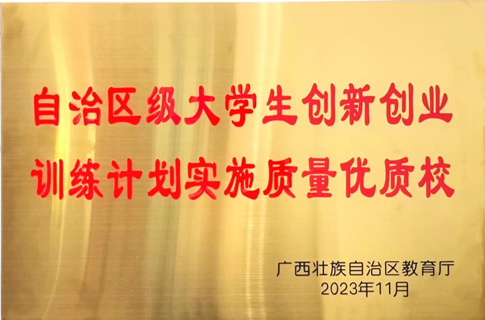 “自治区级大学生创新创业训练计划实施质量优质校”牌匾