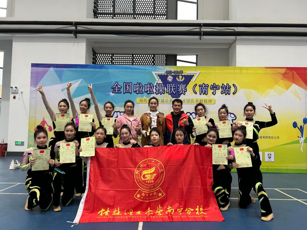 近日,由国家体育总局体操运动管理中心、中国蹦床与技巧协会主办的2023-2024年全国啦啦操联赛成功举办。在桂林站比赛中,beat365大学生艺术团啦啦操队及街舞队分别荣获公开青年乙组集体花球自选动作冠军、公开青年乙组集体街舞自选动作冠军;在南宁站比赛中,南宁分校学子分别获公开青年丙组-集体自由舞蹈自选动作-徒手组第一名、公开青年丙组-集体花球自选动作第二名。
