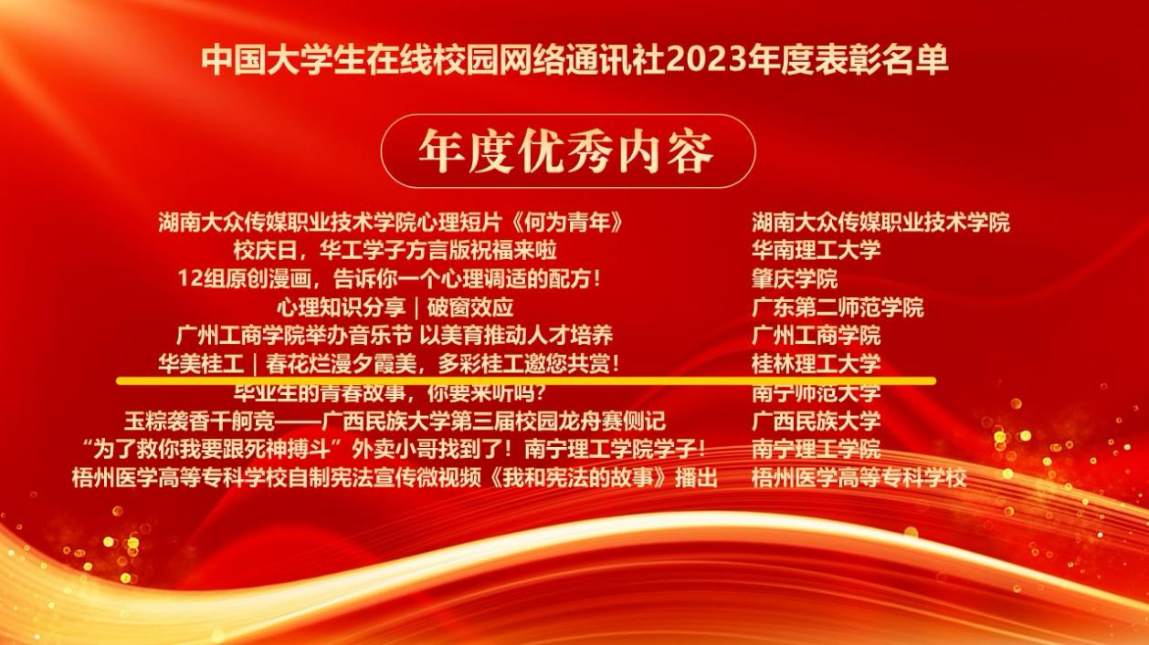 作品《华美桂工 | 春花烂漫夕霞美,多彩桂工邀您共赏!》入选“年度优秀内容榜单”