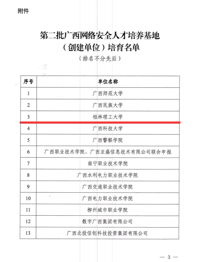 第二批广西广西网络安全人才培育基地(创建单位)培育名单