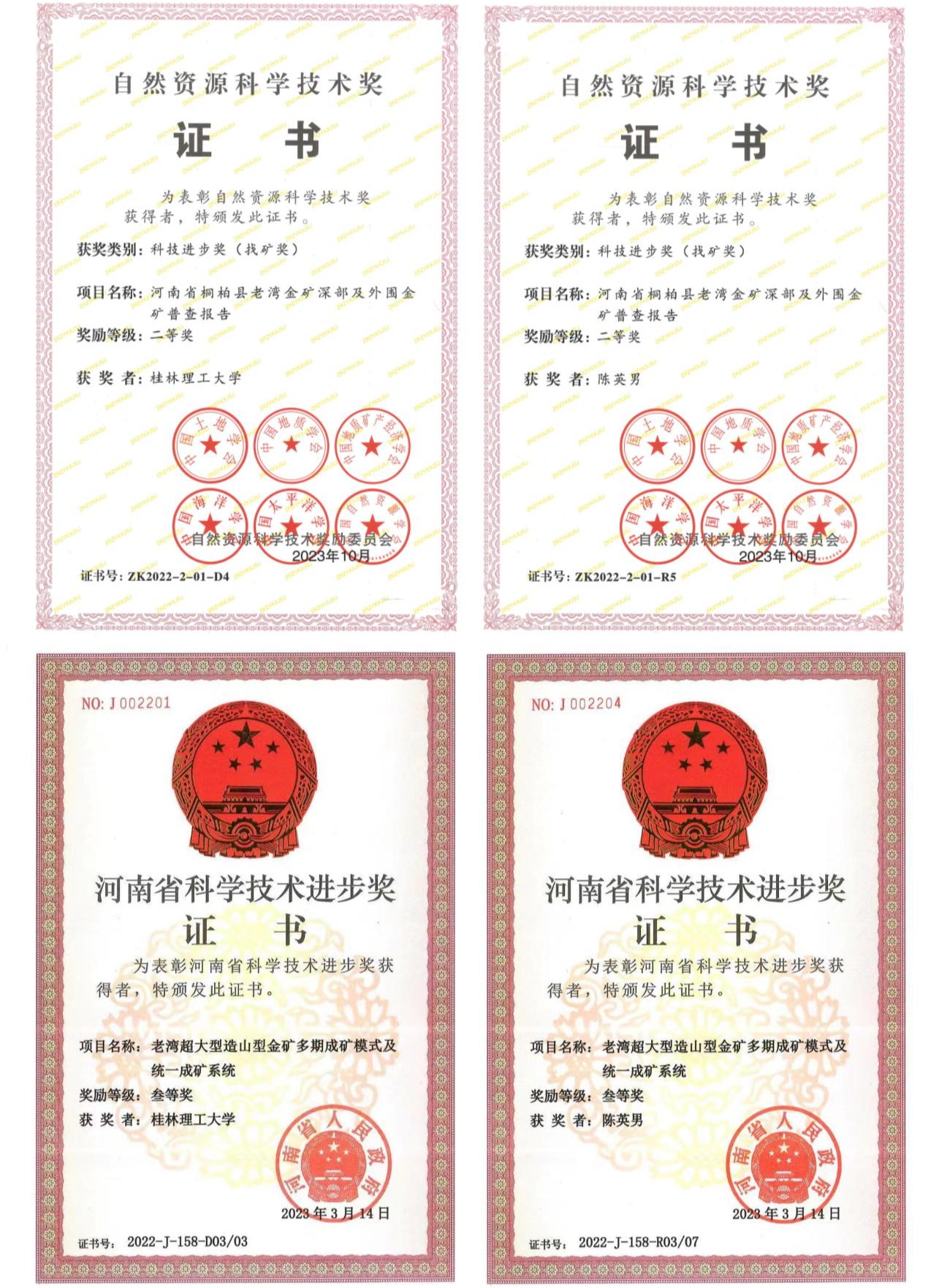 近日,自然资源部、河南省政府公布了2022年度自然资源科学技术奖及河南省科学技术进步奖入选名单,beat365地球科学学院2021级研究生陈英男参与完成的成果荣获自然资源科学技术进步奖二等奖(找矿奖;R5/10)、河南省科学技术进步三等奖(R03/07)。
