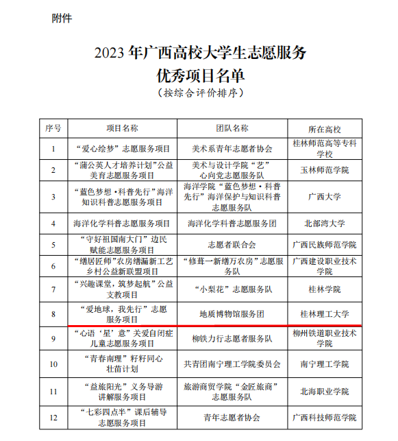 beat365大学生志愿服务项目入选2023年广西高校大学生志愿服务优秀项目