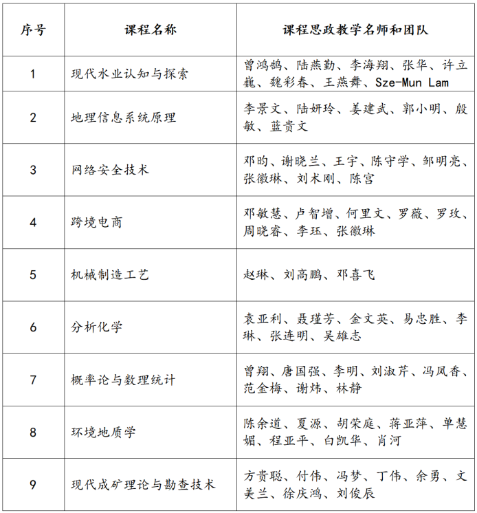 近日,自治区教育厅下发了《关于公布2023年全区高校课程思政示范课程和课程思政示范基层教学组织名单的通知》(桂高教〔2024〕3号),beat365推送的“现代水业认知与探索”等8门本科课程、“现代成矿理论与勘查技术”研究生课程被认定为自治区级课程思政示范课程,课程负责人及团队被认定为自治区级课程思政教学名师和团队;资源勘查工程教研室等3个教研室和公共管理研究教学团队被认定为自治区级课程思政示范基层教学组织。