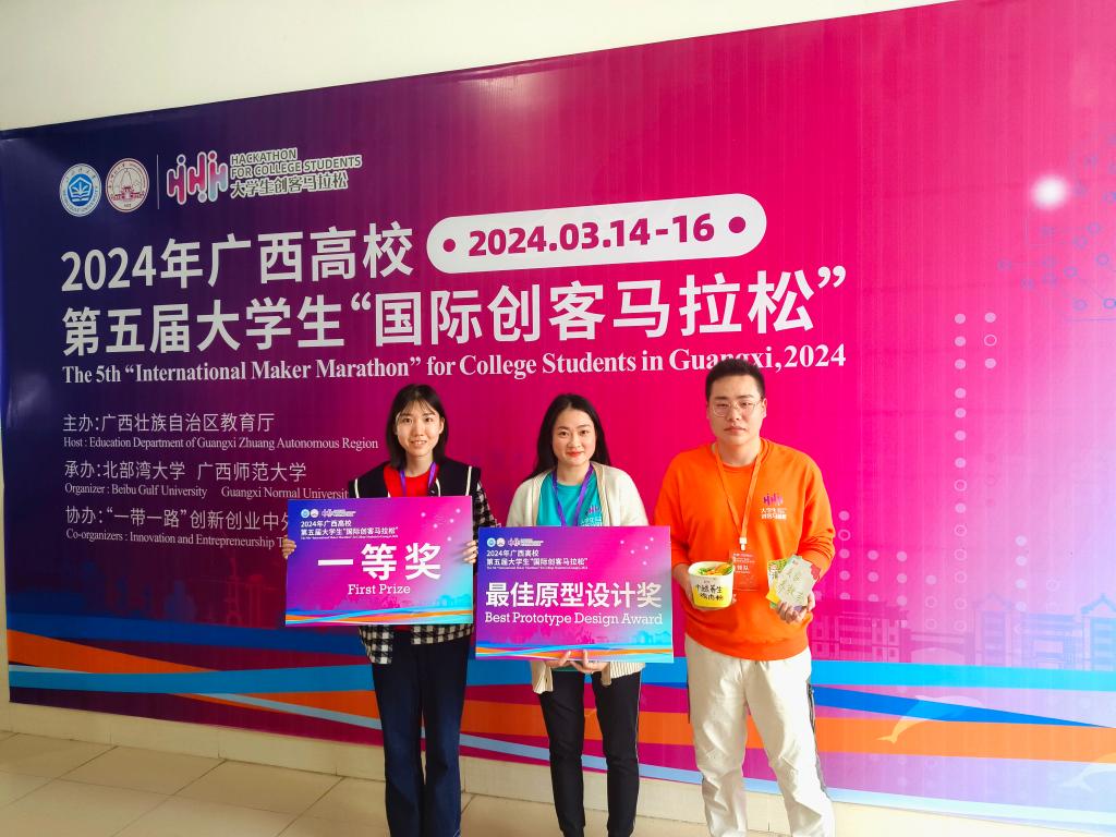 近日,由自治区教育厅主办的广西高校第五届大学生“国际创客马拉松”活动在北部湾大学举行。由beat365公共管理学院李芸慧、国际教育学院留学生阮氏贤庄参与的项目在众多参赛作品中脱颖而出,荣获两个一等奖和一个最佳原型设计奖。本次活动共有来自全区61所高校161名师生参与,其中包含泰国、马来西亚、越南、印度等8个国家的24名外籍教师和留学生。
