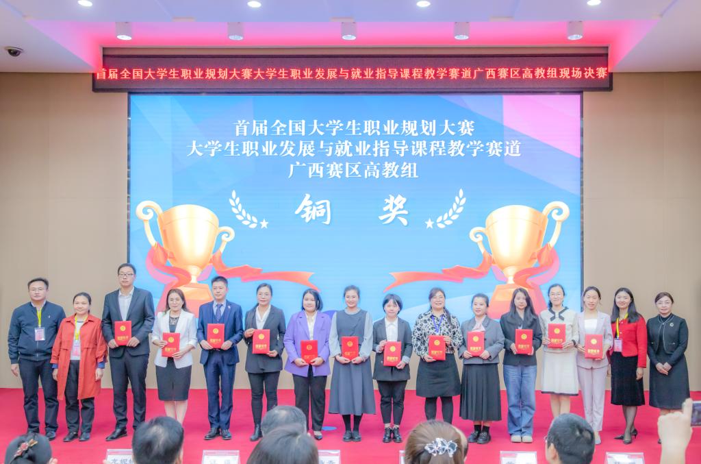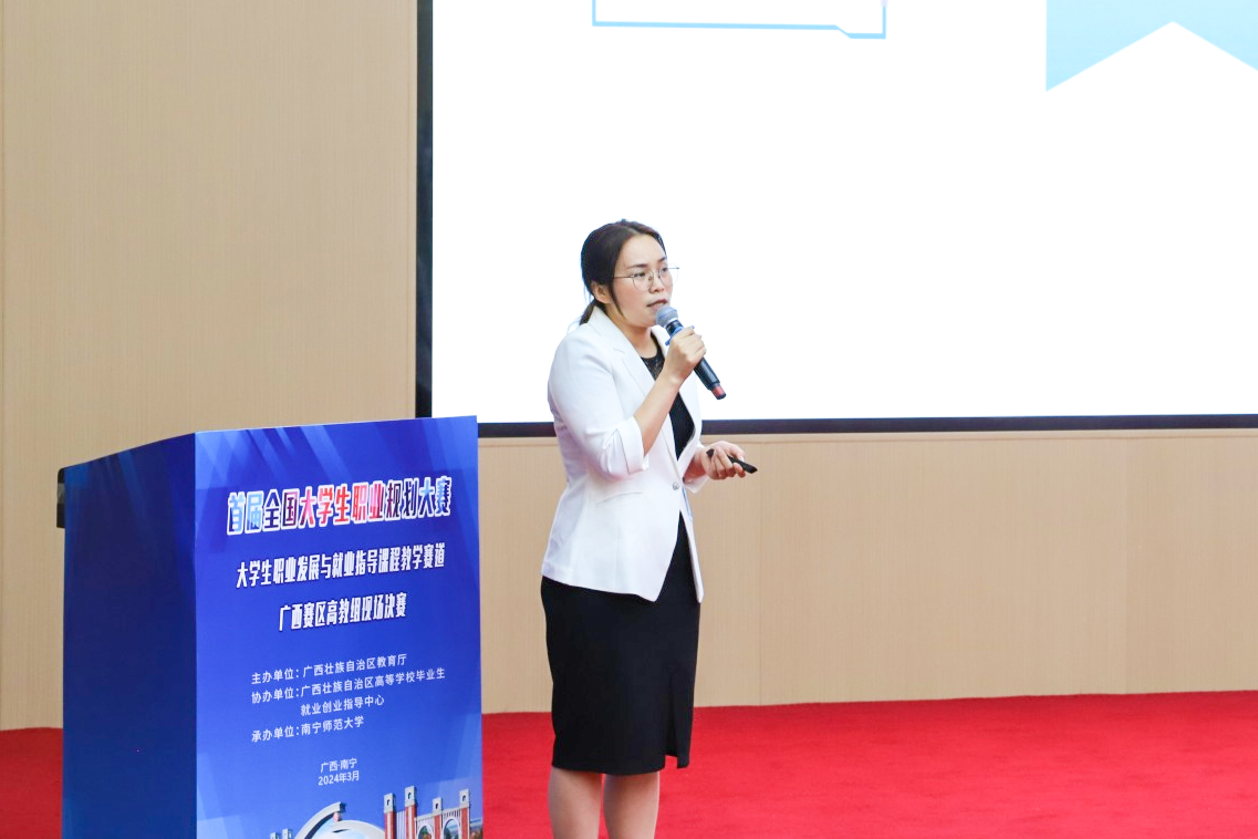 3月16日,首届全国大学生职业规划大赛(课程教学赛道)广西赛区高教组现场总决赛在南宁师范大学举行。beat365计算机科学与工程学院蒙玲娟老师在大赛中表现出色,荣获广西赛区高教组铜奖。