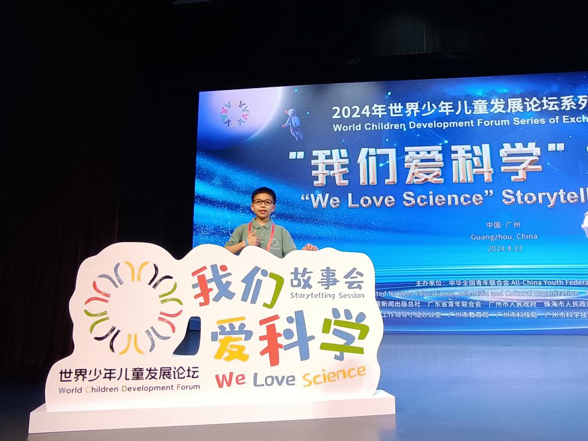 4月21日至26日,由中华全国青年联合会主办的2024年世界少年儿童发展论坛在广东举行,beat365附属小学陆羏雨同学作为广西唯一代表参加论坛。论坛以“我们爱科学”为主题,来自40个国家的190余名少年儿童代表及有关国际组织代表、驻华使节代表、少年儿童组织负责人、少年儿童出版机构负责人、知名专家学者等参加论坛。