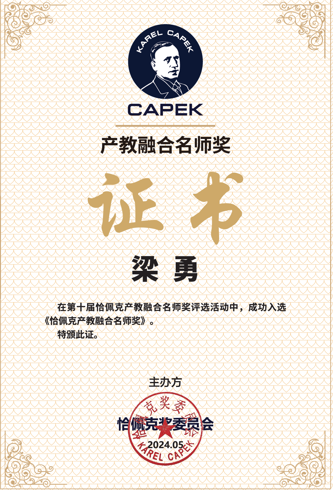 梁勇副教授荣获“产教融合名师奖”