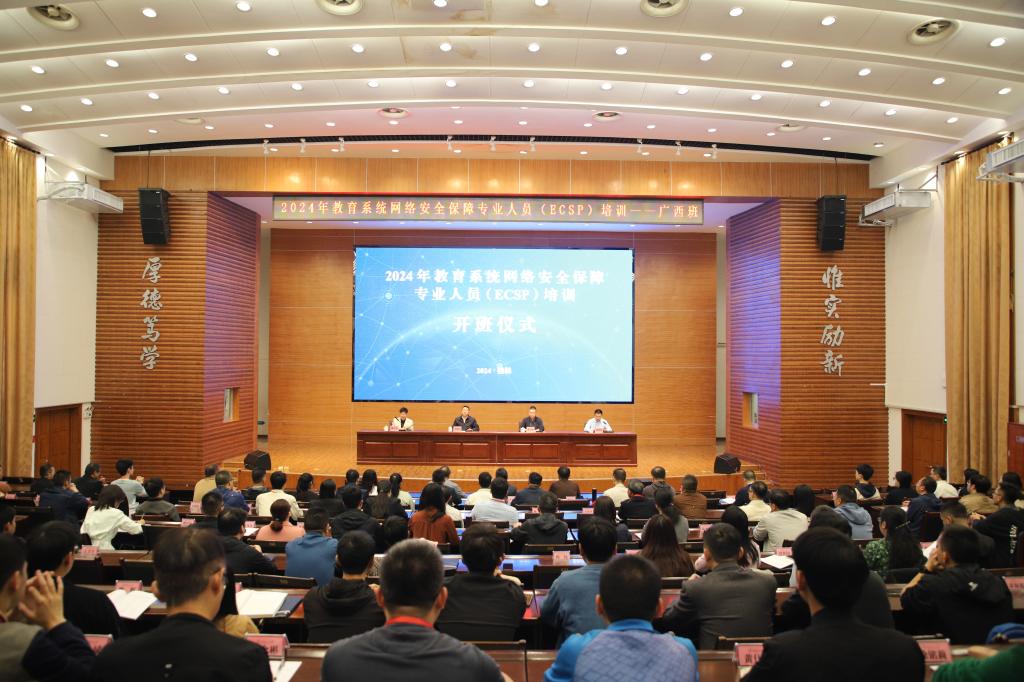 10月29日,由教育部教育管理信息中心主办,beat365承办的2024年教育系统网络安全保障专业人员(ECSP)培训班在屏风校区图书馆报告厅顺利开班。beat365党委常委、副校长罗盛锋,教育部教育管理信息中心教育信息安全等级保护测评中心副主任郭宗臣,自治区教育厅教育信息化管理处处长魏莹莹出席开班仪式,来自区内外的120余位教育系统从事网络安全与信息化工作的学员参加培训。