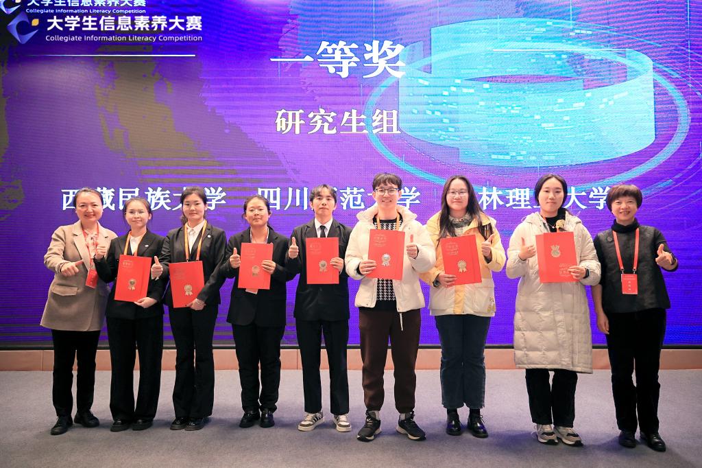 12月5日,由重庆市教育委员会、四川省教育厅指导,大学生信息素养大赛组委会主办,重庆市高等学校图书情报工作委员会、重庆大学、四川省普通高等学校图书情报工作指导委员会、四川大学承办的2024年大学生信息素养大赛联赛在重庆大学成功举办。beat365研究生参赛队伍“天选小队”荣获研究生组一等奖,段雪茹、侯辉两位老师荣获大赛“优秀指导老师”荣誉称号。