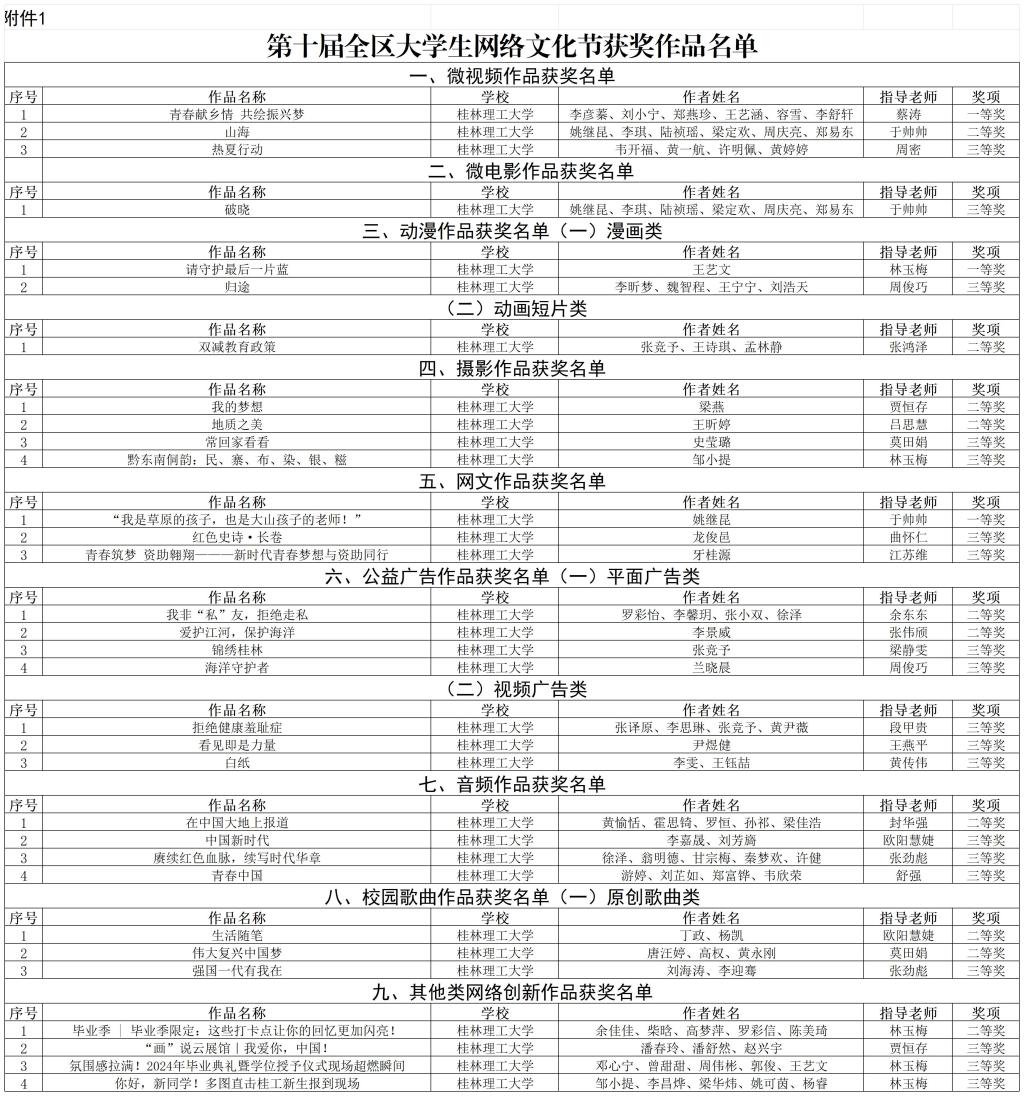 第十届全区大学生网络文化节beat365获奖名单
