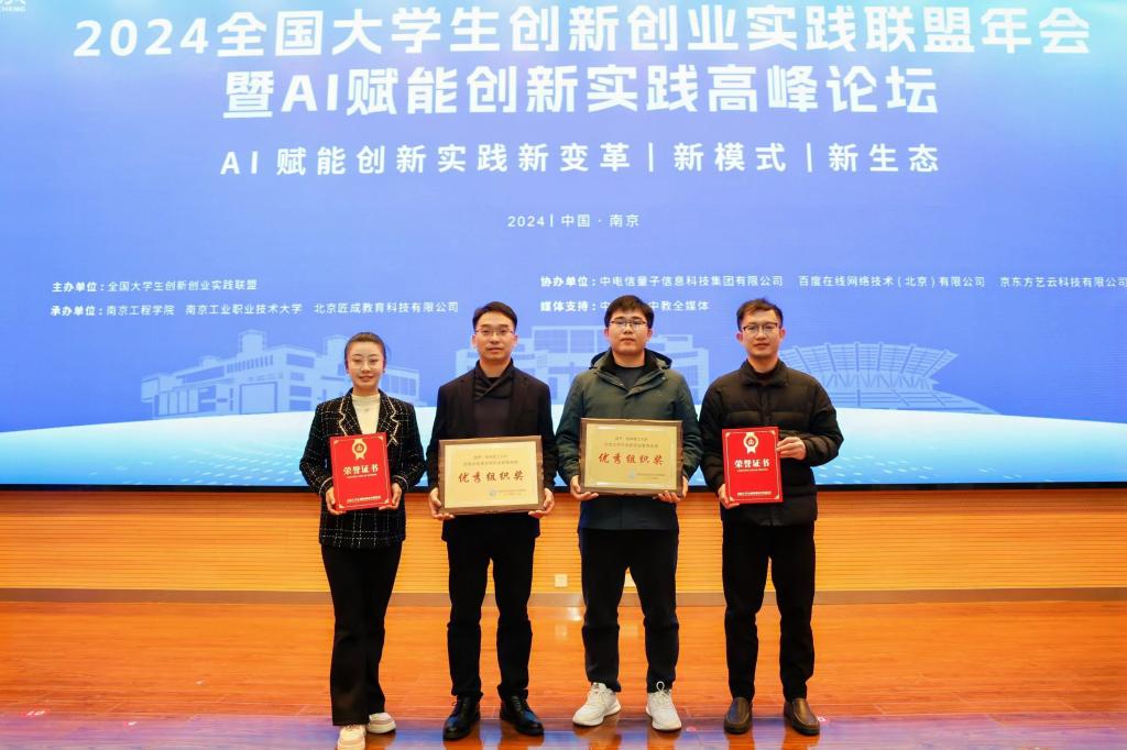 2024年12月28日,全国大学生创新创业实践联盟年会(2024)暨AI赋能创新实践高峰论坛在南京工程学院召开。beat365从全国682所高校中脱颖而出,荣获“优秀组织单位”(全国仅20个),入选获奖论文4篇,土木工程学院“力支测试——国内力学测试系统智能化领航者”项目获评“优秀案例”,环境科学与工程学院张亚楠老师获“指导教师优秀事迹”奖。