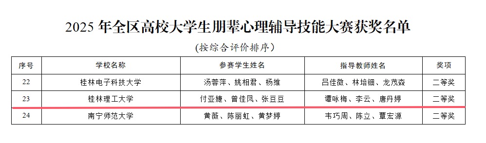 2025年全区高校大学生朋辈心理辅导技能大赛获奖名单