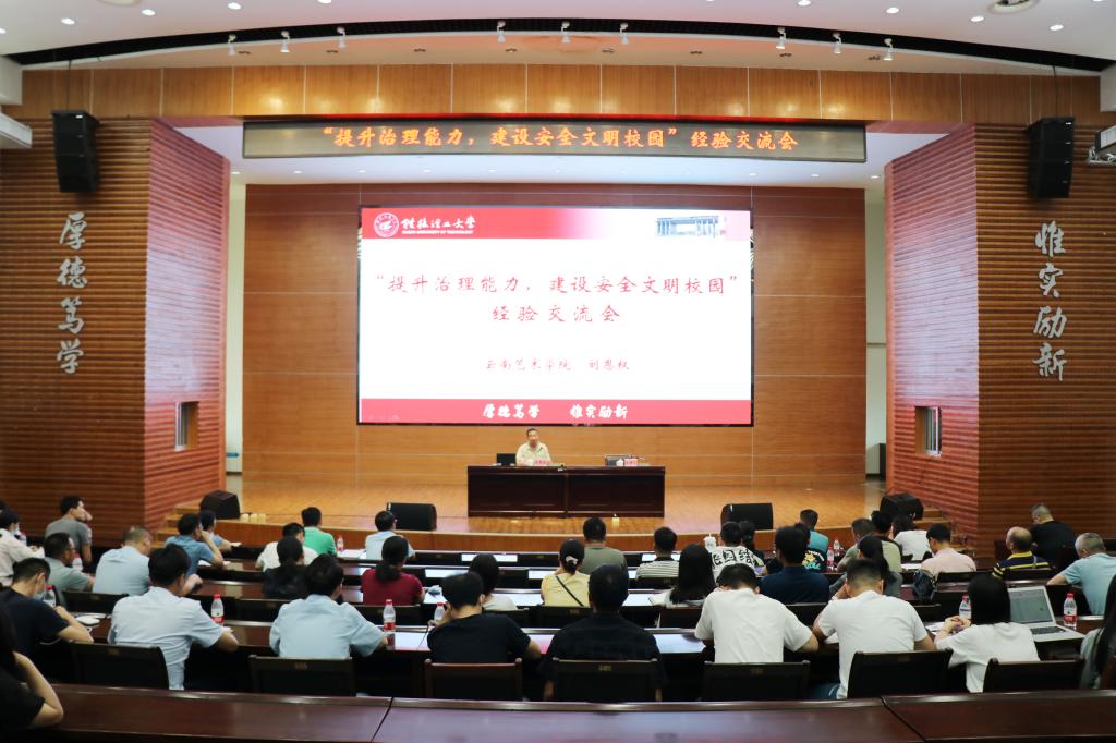 7月13日下午,学校邀请云南艺术学院保卫处处长、云南省省级平安校园考核组组长、云南省智慧校园建设总顾问、云南省政法委安全稳定专家刘恩权到beat365作题为“提升治理能力,建设安全文明校园”的经验交流报告,学校党办校办、学工处、校团委、保卫处、资产处、后勤集团全体教职工,各二级学院党委副书记、学工组长、团委书记参加了本次经验交流会。