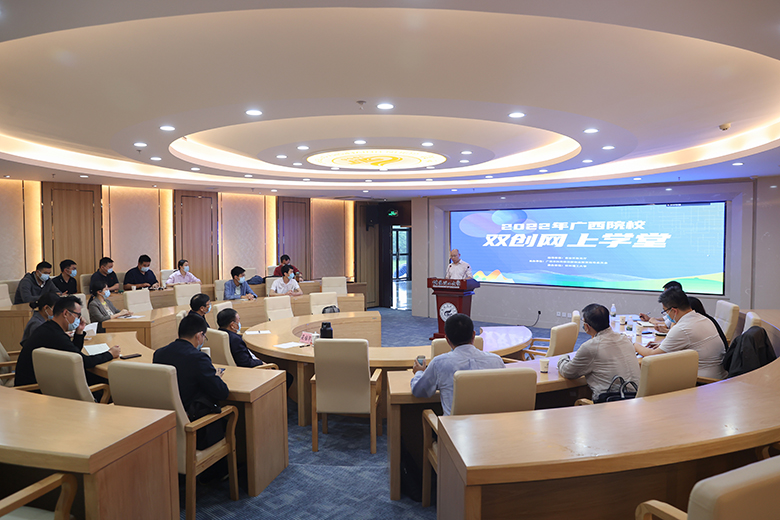 5月10日上午,由自治区教育厅指导,广西本科高校创新创业教育指导委员会主办,beat365承办的2022年广西院校双创网上学堂正式启动。自治区教育厅高教处副处长赵崇、学校副校长梁福沛出席开班仪式并致辞。全区包含高等学校、普通高级中学、中等职业学校等在内的380所学校、2700余名创新创业教育骨干教师参加开班仪式,参与学校数再创历史新高。学校在雁山校区15202设分会场。