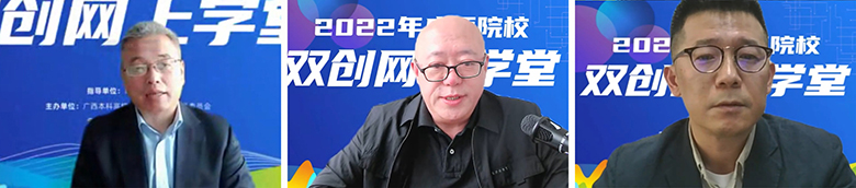 开班仪式后,2022年广西院校双创网上学堂第一堂课正式开课。北京新产教科技有限公司董事长、广西本科高校创新创业教育指导委员会委员马德富,北京华富嘉辰投资基金管理中心创始合伙人/总裁、北京万学教育科技有限公司董事、教育部高等学校创新创业教育指导委员会副秘书长张强,海聚科投董事长、中德科技创新协会会长孙琦琳等3位专家分别对第八届中国国际“互联网+”大学生创新创业大赛最新变化及高教主赛道、“青年红色筑梦之旅”赛道和萌芽赛道、职教赛道和产业赛道进行了解读。
