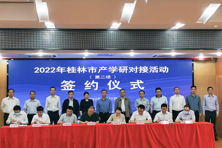 为加强产学研合作,引领企业技术创新,提高企业核心竞争力,加快产业链和创新链双向融合,促进产业高质量发展,4月27日,由桂林市科技局、市工业和信息化局、桂林高新技术产业开发区管理委员会共同举办的桂林市大健康产业产学研对接活动在桂林国家高新区创意大厦举行,并以网络形式进行同步直播。学校副校长周国清出席活动,科技处及相关产业的科研专家代表参加活动。本次活动共有来自全市30余家企业、7所高校科研院所、媒体代表等近150人参与。
