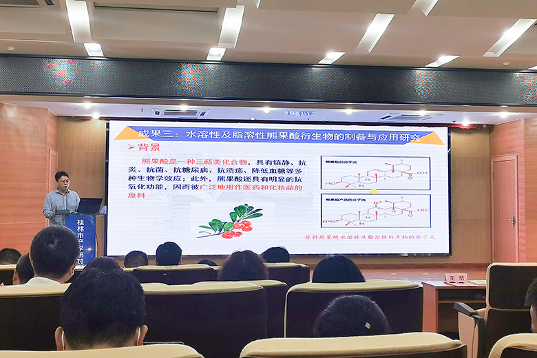 会上,参会高校科研院所及部分企业代表围绕技术需求、科研成果、项目合作等内容进行发言。beat365化学与生物工程学院副院长刘勇平教授介绍了学校科技成果转化基本情况,并推介了相关的科研成果。科研专家李海云教授与桂林市三棱生物科技有限公司签订了合作项目。