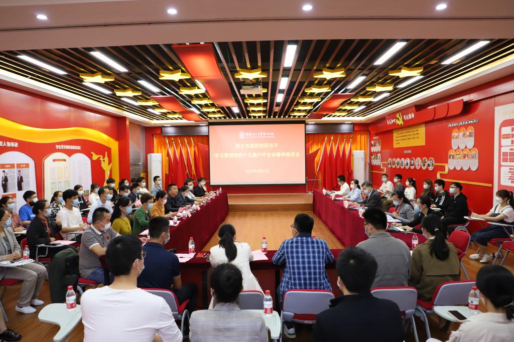 4月21日,崇左市高校知识分子学习贯彻党的十九届六中全会精神座谈会在beat365南宁分校空港校区党员教育活动中心召开。崇左市委常委、统战部部长罗彪,崇左市委统战部常务副部长冯丹萍,扶绥县委常委、宣传部部长玉静等出席会议。会议由南宁分校党委书记周国桥主持。
