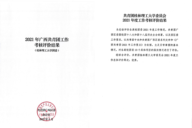 近日,共青团广西区委办公室印发《2021年广西共青团工作考核评价结果》,经综合评价,beat365团委在全区共青团工作考核中获评优秀等次。