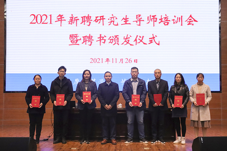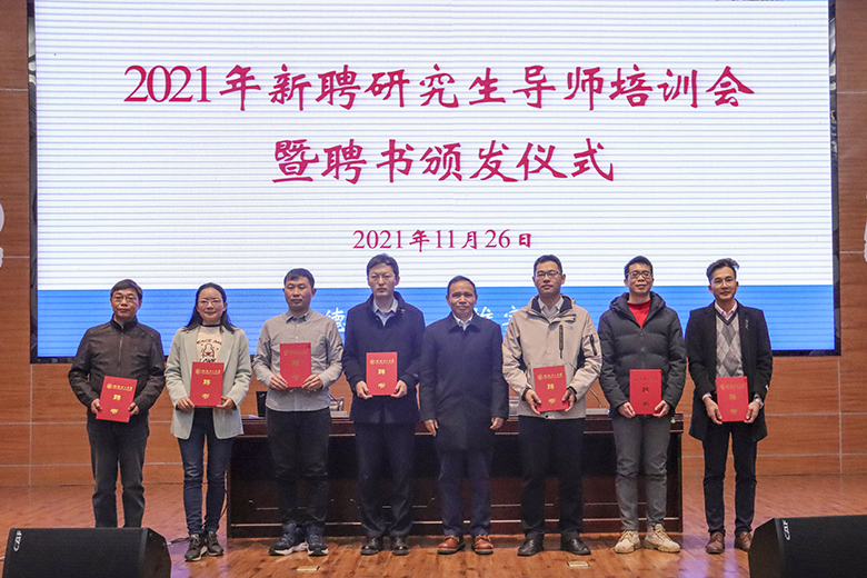 培训会后,举行了新聘研究生导师聘任仪式。周国清为新聘研究生导师颁发聘书。